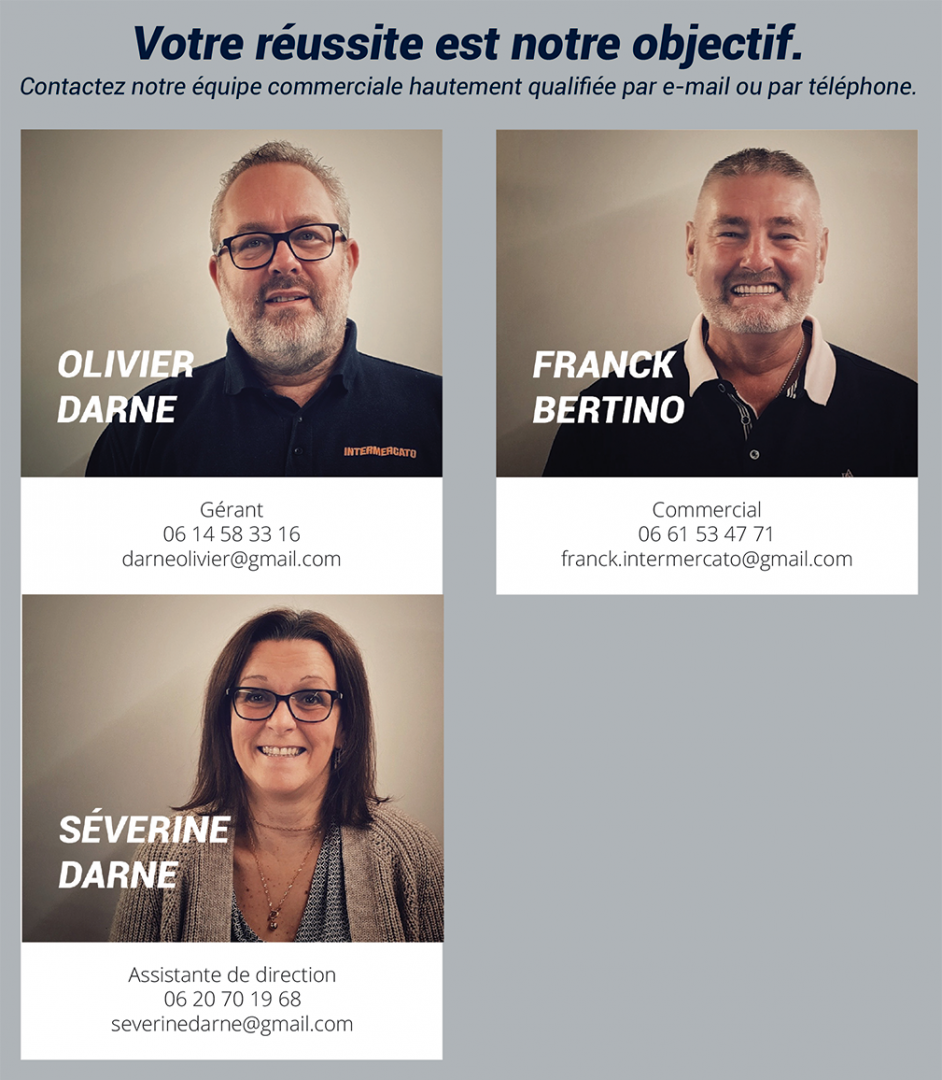 INTERMERCATO FRANCE SAS s'engage à ce que la collecte et le traitement de vos données, effectués à partir de notre site intermercato-france.fr, soient conformes au règlement général sur la protection des données (RGPD) et à la loi Informatique et Libertés. Pour connaître et exercer vos droits, notamment de retrait de votre consentement à l'utilisation des données collectées par ce formulaire, ou à vous inscrire sur la liste d'opposition au démarchage téléphonique, veuillez consulter notre politique de confidentialité